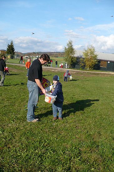 A povedlo se. V sobotu 18.10. opravdu foukalo. Byl zase nádherný den, sluníčko svítilo, barevné listí se tetelilo a vítr foukal. Podzim jako malovaný. Draci létaly, děti dostaly sladkosti za odměnu, .....