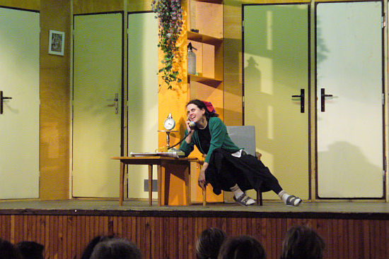 Tato hra bývá označována jako jedna z nejlepších komediíí současnosti. A kdo přišel (asi 89 diváků), určitě neprohloupil. Hra se odehrává ve dvou dějstvích. Jednou vidíme režiséra, jak řídí natáčení hry a co probíhá před kulisami. Ve druhém dějství nabírá hra na obrátkách, když se kulisy otočí a my vidíme, jak to vypadá "zezadu". Co dělají herci mezi jednotlivými výstupy, jak se chystají, jak vyrušují ostatní,....