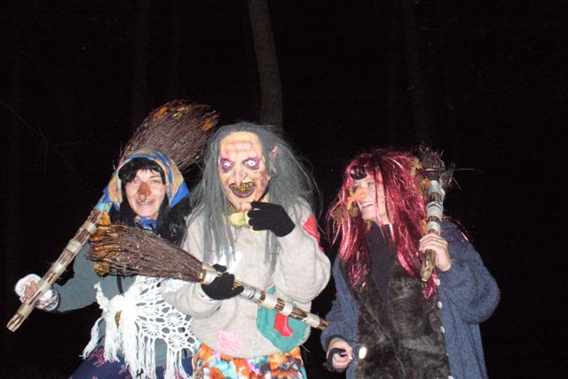 Další přepadovka čekala průvod těsně pod lesem, kde bydlely 3 ošklivé čarodějnice. „ Baf, a ty jsi kdo?“ „Já, já, já jsem Barunka z České Třebové.“ „ Já jsem Adélka z Ostrova“ „Já Vojta ze Sázavy“…. Hodným dětem z blízka i z dáli čarodějnice rozdaly bonbóny a na zlobivé zabrblaly. Když vstoupili do lesa, listí už zase příjemně šustilo pod nohami a děti směle vyrazily do loupežnického doupěte pro zlatý poklad. Pak všem dědeček bylinkář navařil teplý čaj.