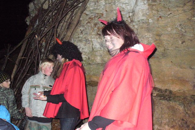 A poslední, nejtěžší zkouška byla procházka pekelnou bránou. I tu všechny děti i rodičové úspěšně zdolali a vyrazili zpátky k sázavskému hřišti opéct po příjemné procházce párky k večeři.