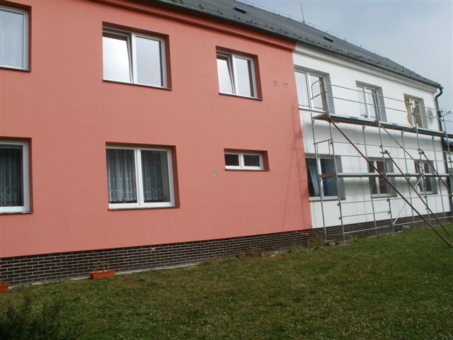V měsíci září - říjen probíhají opravy na bytovém domě čp.15 - výměna oken a oprava a nátěr fasády.